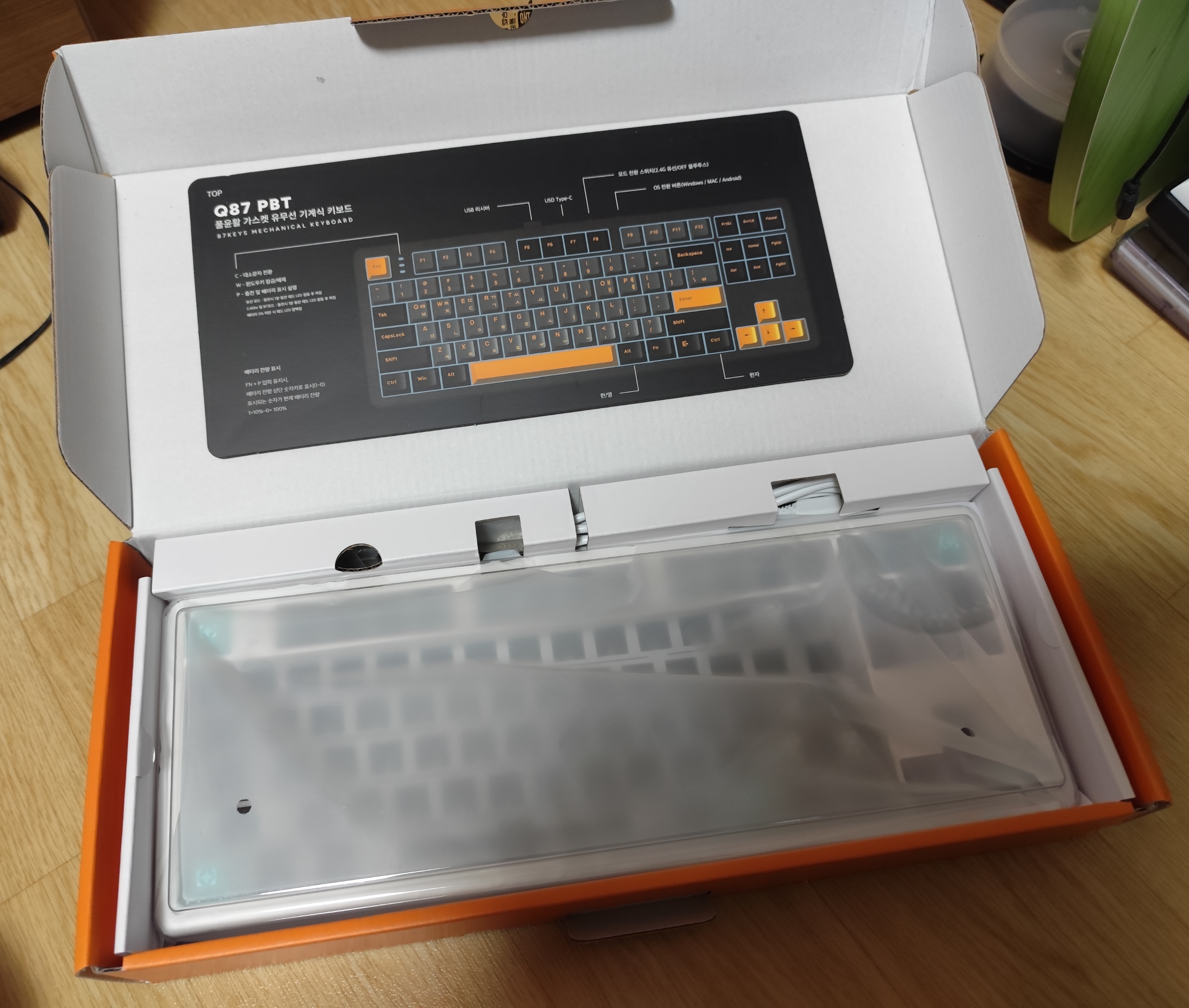 q87베어본 키보드는 별도 박스를 안만들었는지 완성품 박스와 똑같은걸 쓴다;;